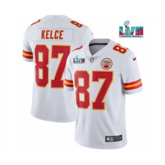 Men's Kansas City Chiefs #87 Travis Kelce White Super Bowl LVII Patch Vapor Untouchable Limited Stitched Jersey