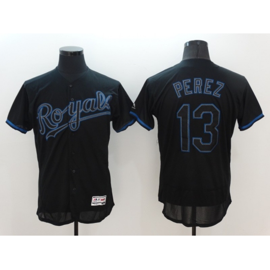 Men's Kansas City Royals #13 Salvador Perez Black Jersey