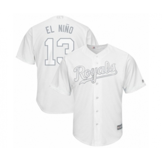 >Men's Kansas City Royals #13 Salvador Perez El Nino Authentic White 2019 Players Weekend Baseball Jersey