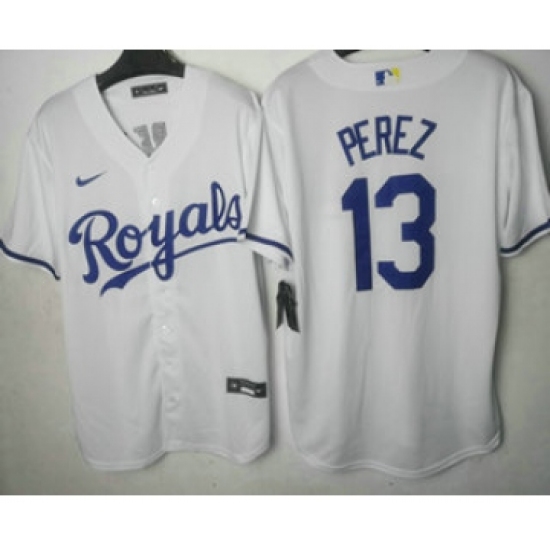 Men's Kansas City Royals #13 Salvador Perez White Cool Base Stitched MLB Jersey