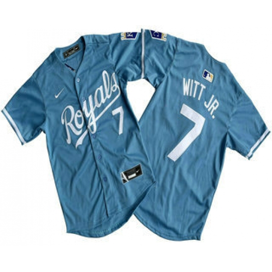 Men's Kansas City Royals #7 Bobby Witt Jr Number Light Blue Limited Stitched Jersey