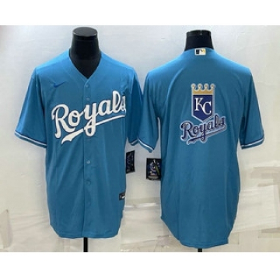 Men's Kansas City Royals Big Logo Light Blue Stitched MLB Cool Base Nike Jerseys