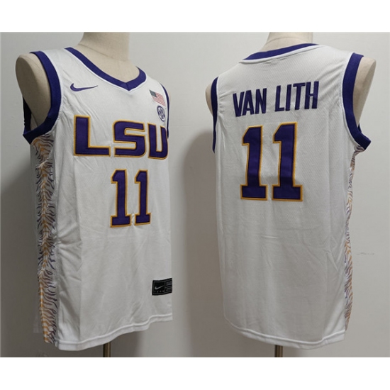 >Men's LSU Tigers #11 Hailey Van Lith White Stitched Jersey