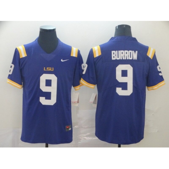 >Men's LSU Tigers #9 Burrow Purple College Football Jersey