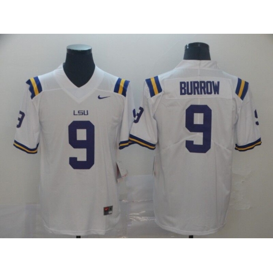 Men's LSU Tigers #9 Burrow White College Football Jersey