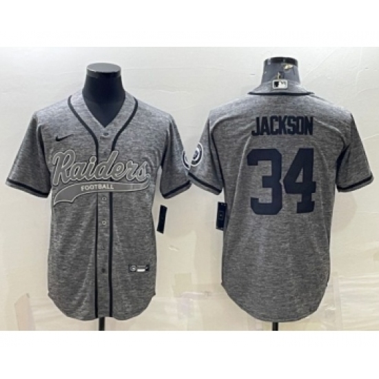 Men's Las Vegas Raiders #34 Bo Jackson Gray With Patch Cool Base Stitched Baseball Jersey