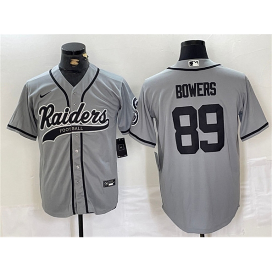 >Men's Las Vegas Raiders #89 Brock Bowers Gray Cool Base Baseball Stitched Jersey