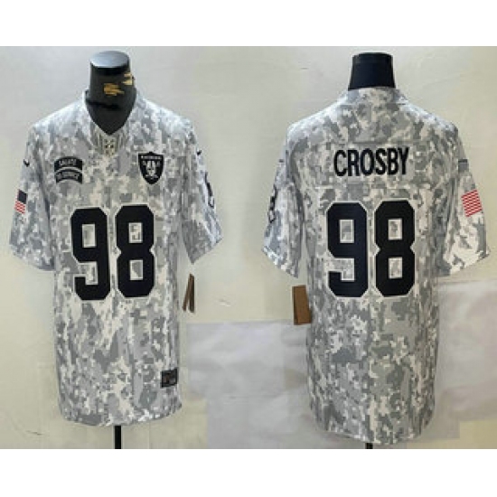 Men's Las Vegas Raiders #98 Maxx Crosby 2024 FUSE Arctic Camo Salute to Service Limited Stitched Jersey