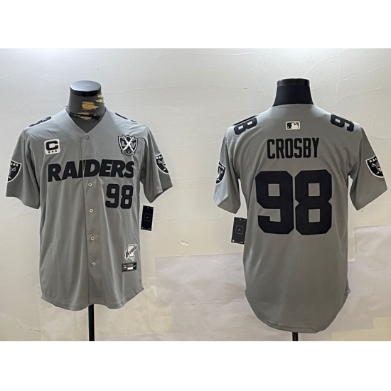 >Men's Las Vegas Raiders #98 Maxx Crosby Grey Nevada Silver State And 65th Stitched Baseball Jersey