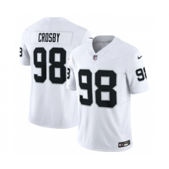 >Men's Las Vegas Raiders #98 Maxx Crosby White 2023 F.U.S.E Vapor Untouchable Stitched Football Jersey