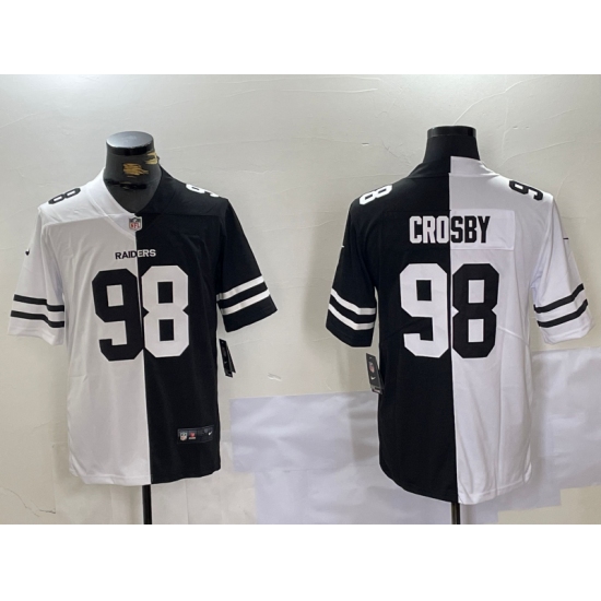 Men's Las Vegas Raiders #98 Maxx Crosby White Black Peaceful Coexisting Vapor Stitched Jersey