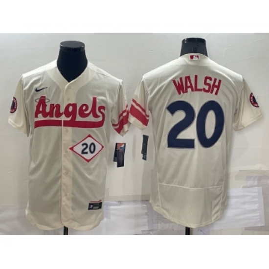 Men's Los Angeles Angels #20 Jared Walsh Number Cream 2022 City Connect Flex Base Stitched Jersey