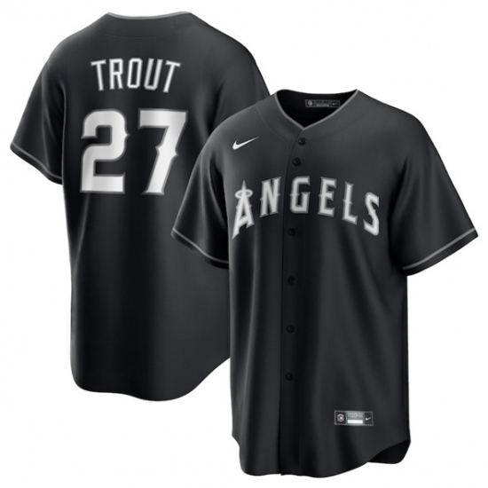 Men's Los Angeles Angels #27 Mike Trout Black Lights Out Limited Stitched Baseball Jersey