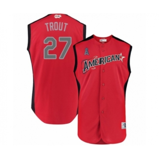 Men's Los Angeles Angels of Anaheim #27 Mike Trout Authentic Red American League 2019 Baseball All-Star Jersey