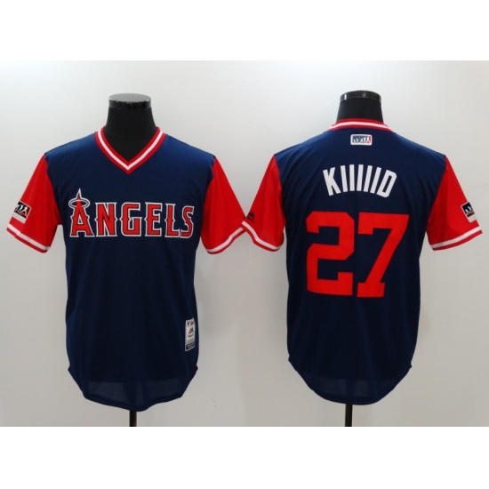 >Men's Los Angeles Angels of Anaheim #27 Mike Trout Kiiiiid Authentic Navy Jersey