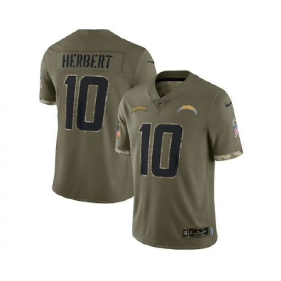 Men's Los Angeles Chargers #10 Justin Herbert 2022 Olive Salute To Service Limited Stitched Jersey
