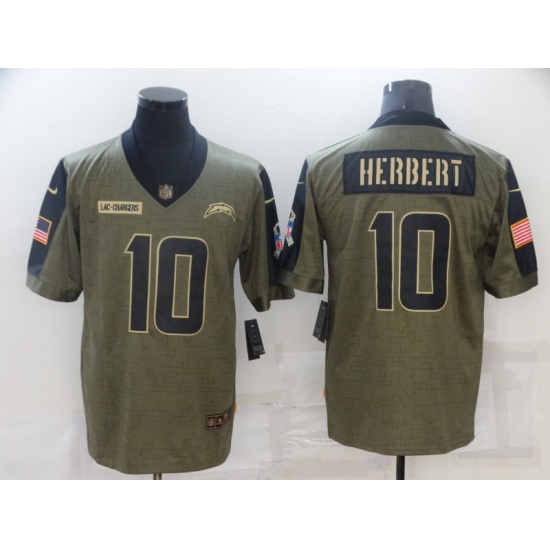 Men's Los Angeles Chargers #10 Justin Herbert Nike Olive 2021 Salute To Service Limited Player Jersey