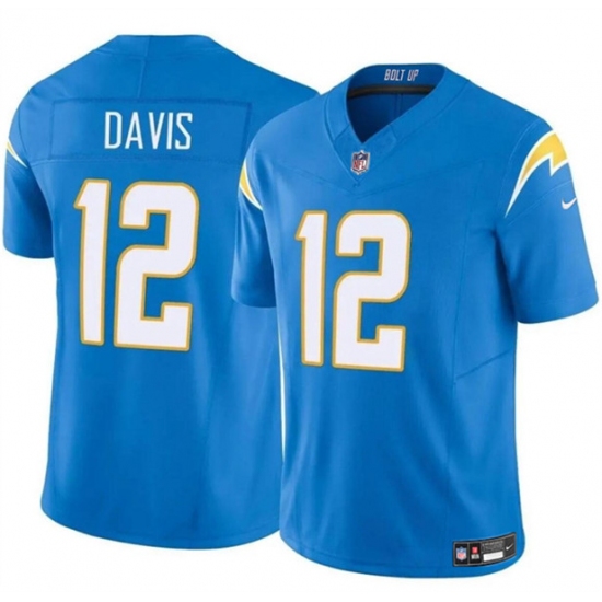 Men's Los Angeles Chargers #12 Derius Davis Blue 2024 F.U.S.E. Vapor Limited Football Stitched Jersey