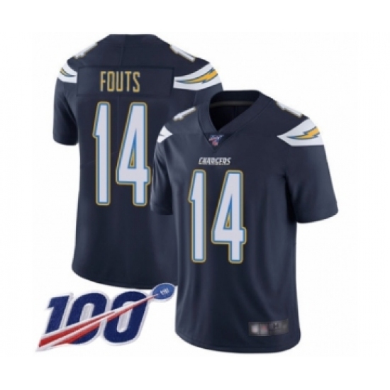 Men's Los Angeles Chargers #14 Dan Fouts Navy Blue Team Color Vapor Untouchable Limited Player 100th Season Football Jersey