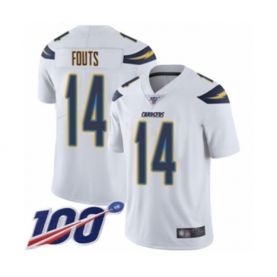 >Men's Los Angeles Chargers #14 Dan Fouts White Vapor Untouchable Limited Player 100th Season Football Jersey
