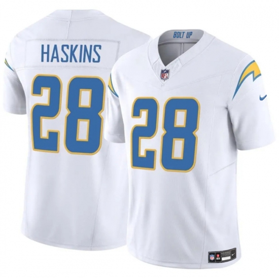 Men's Los Angeles Chargers #28 Hassan Haskins White 2024 F.U.S.E Vapor Limited Stitched Football Jersey