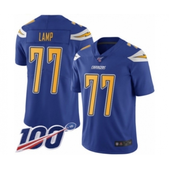 Men's Los Angeles Chargers #77 Forrest Lamp Limited Electric Blue Rush Vapor Untouchable 100th Season Football Jersey