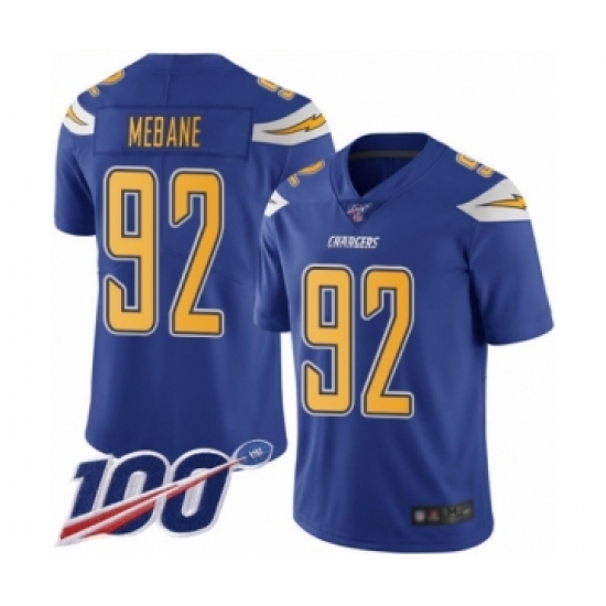 Men's Los Angeles Chargers #92 Brandon Mebane Limited Electric Blue Rush Vapor Untouchable 100th Season Football Jersey