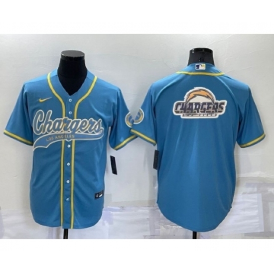 Men's Los Angeles Chargers Light Blue Team Big Logo With Patch Cool Base Stitched Baseball Jersey