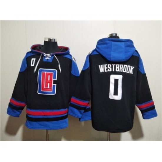 Men's Los Angeles Clippers #0 Russell Westbrook Black Blue Lace-Up Pullover Hoodie