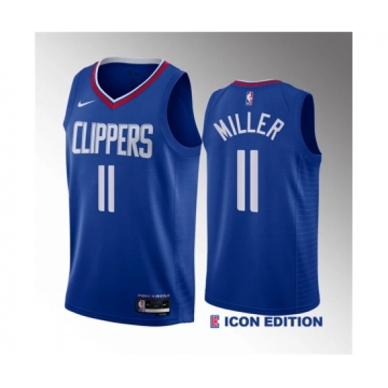 >Men's Los Angeles Clippers #11 Jordan Miller Blue 2023 Draft Icon Edition Stitched Jersey