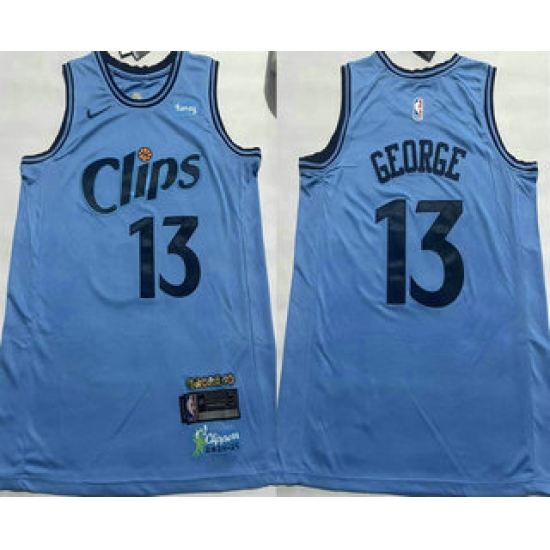 Men's Los Angeles Clippers #13 Paul George Light Blue 2024 City Icon Sponsor Swingman Jersey