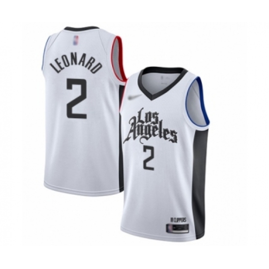 >Men's Los Angeles Clippers #2 Kawhi Leonard Swingman White Basketball Jersey - 2019-20 City Edition