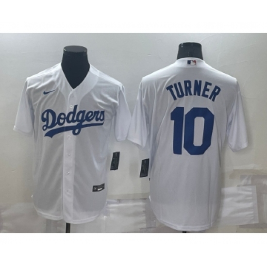 Men's Los Angeles Dodgers #10 Justin Turner White Stitched MLB Cool Base Nike Jersey