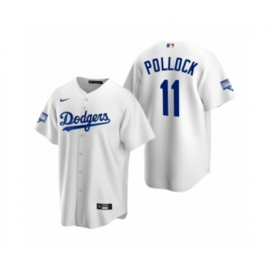 >Men's Los Angeles Dodgers #11 A.J. Pollock White 2020 World Series Champions Replica Jersey