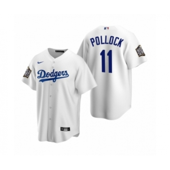 Men's Los Angeles Dodgers #11 A.J. Pollock White 2020 World Series Replica Jersey