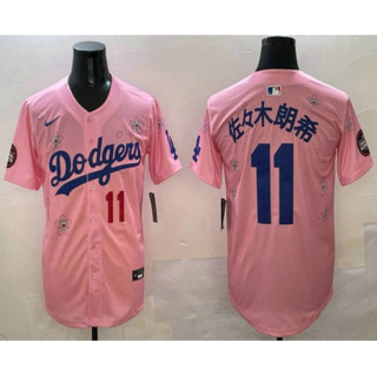 Men's Los Angeles Dodgers #11 Roki Sasaki Pink Japanese 2025 Tokyo Series Limited Jersey
