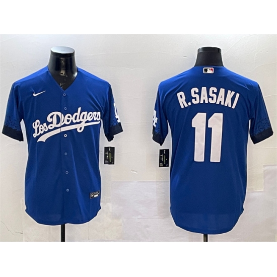 Men's Los Angeles Dodgers #11 Roki Sasaki Royal City Connect Cool Base Stitched Baseball Jersey