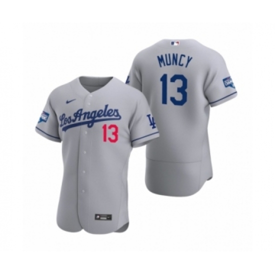 Men's Los Angeles Dodgers #13 Max Muncy Gray 2020 World Series Champions Road Authentic Jersey