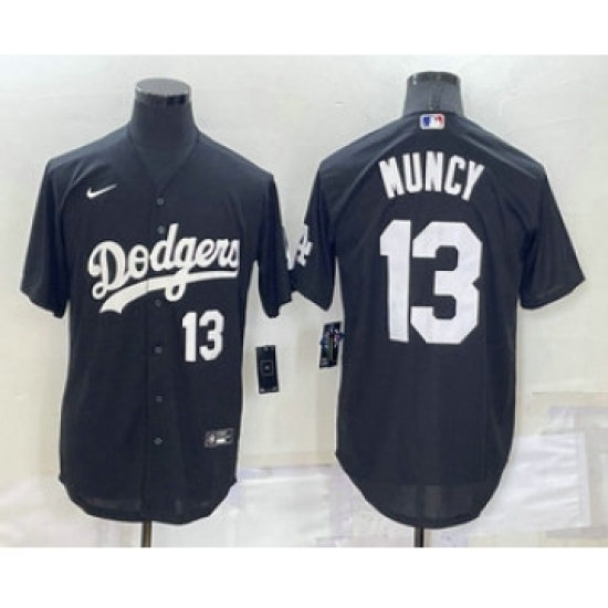 >Men's Los Angeles Dodgers #13 Max Muncy Number Black Turn Back The Clock Stitched Cool Base Jersey