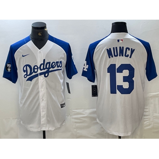 Men's Los Angeles Dodgers #13 Max Muncy White Blue Fashion Stitched Cool Base Limited Jerseys