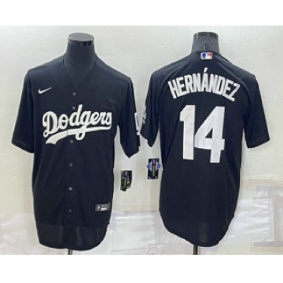 >Men's Los Angeles Dodgers #14 Enrique Hernandez Black Turn Back The Clock Stitched Cool Base Jersey