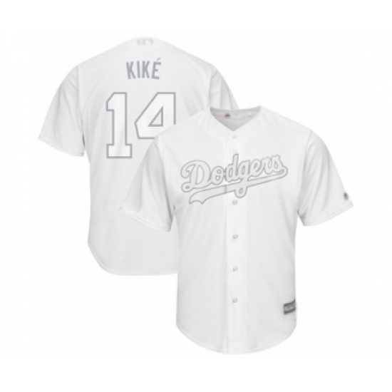 >Men's Los Angeles Dodgers #14 Enrique Hernandez Kike Authentic White 2019 Players Weekend Baseball Jersey