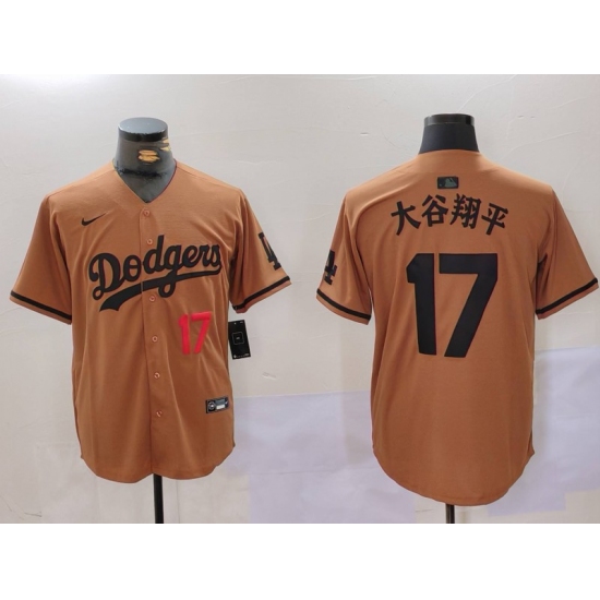 Men's Los Angeles Dodgers #17 太谷翔平 Brown Cool Base Stitched Baseball Jersey