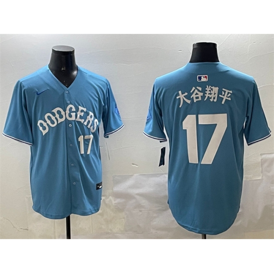 Men's Los Angeles Dodgers #17 大谷翔平 Light Blue Limited Stitched Baseball Jersey