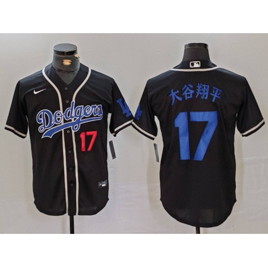 Men's Los Angeles Dodgers #17 大谷翔平 Number Black Cool Base With Stitched Baseball Jersey