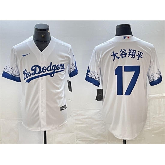 >Men's Los Angeles Dodgers #17 大谷翔平 White City Connect Cool Base Stitched Jersey