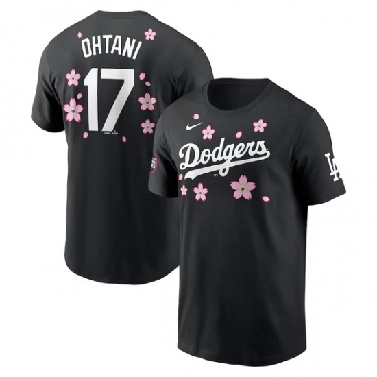 >Men's Los Angeles Dodgers #17 Shohei Ohtani Black 2025 Tokyo Series Name & Number T-Shirt