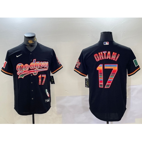 Men's Los Angeles Dodgers #17 Shohei Ohtani Black Rainbow Mexico Cool Base Stitched Jersey