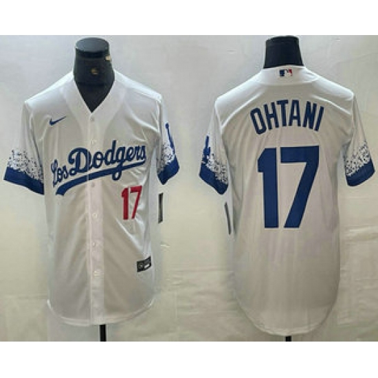 >Men's Los Angeles Dodgers #17 Shohei Ohtani Number White 2021 City Connect Cool Base Stitched Jersey