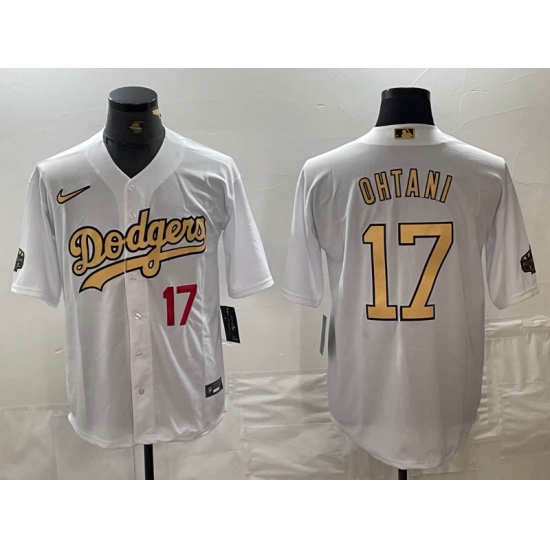 >Men's Los Angeles Dodgers #17 Shohei Ohtani Number White 2022 All Star Stitched Cool Base Nike Jersey